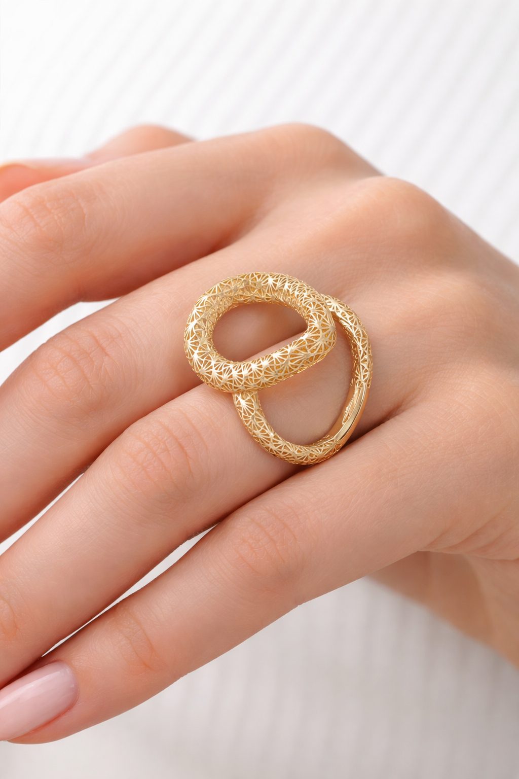 O Anel Gota Vazada Gold com um luxuoso banho de Ouro, este anel apresenta  um aspecto vazado  ao longo de sua estrutura em formato de gota, criando um visual moderno e ao mesmo tempo cheio de significado.