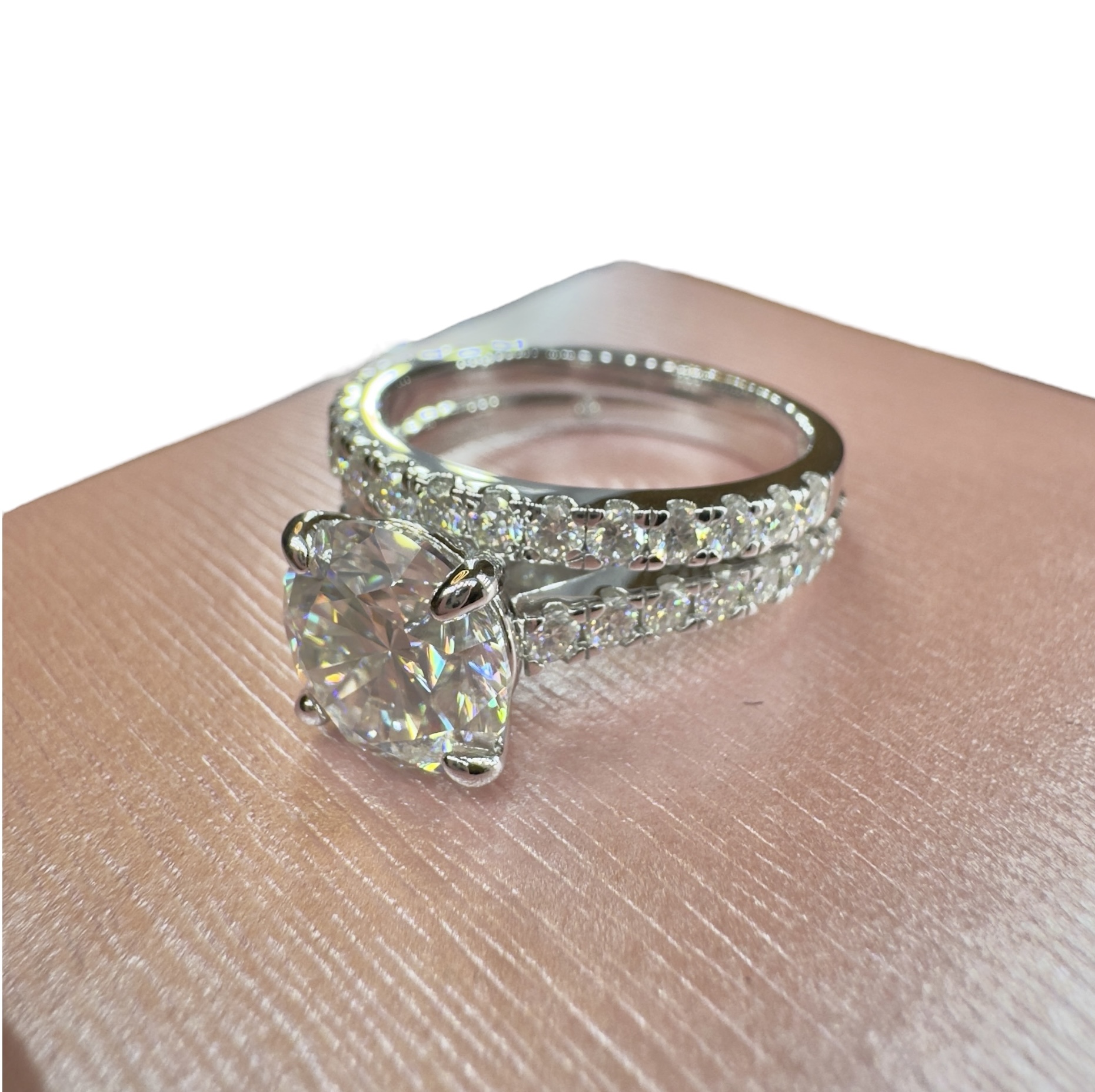 Pedra: Moissanite ( 3 Cts ) (9mm ) Pedra Principal / (2mm) Pedras laterais