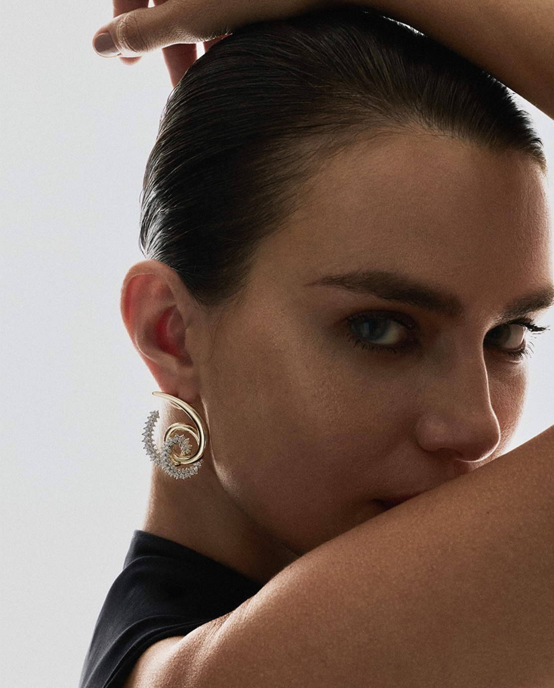 Brinco Desing Ava Ouro é uma joia com desing único e exclusivo Dani Dellicatta, joias especial para momentos especiais, prata 925 com banho de Ouro 18k , 10 milésimos de banho , cravação em zircônias Brancas. Joias Perfeita para as festas.