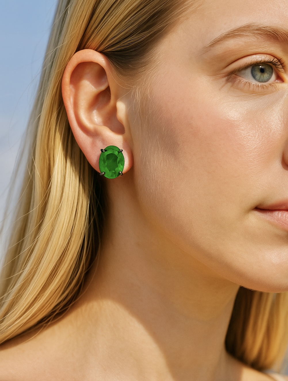 Produto: Brinco Oval Esmeralda Fusion Prata 925