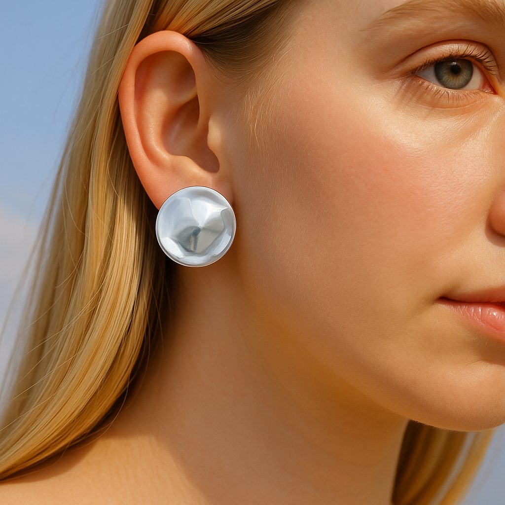 Brinco redondo com textura trabalhada e acabamento abaulado, que proporciona um visual moderno e sofisticado. Perfeito para valorizar o look com elegância e estilo.