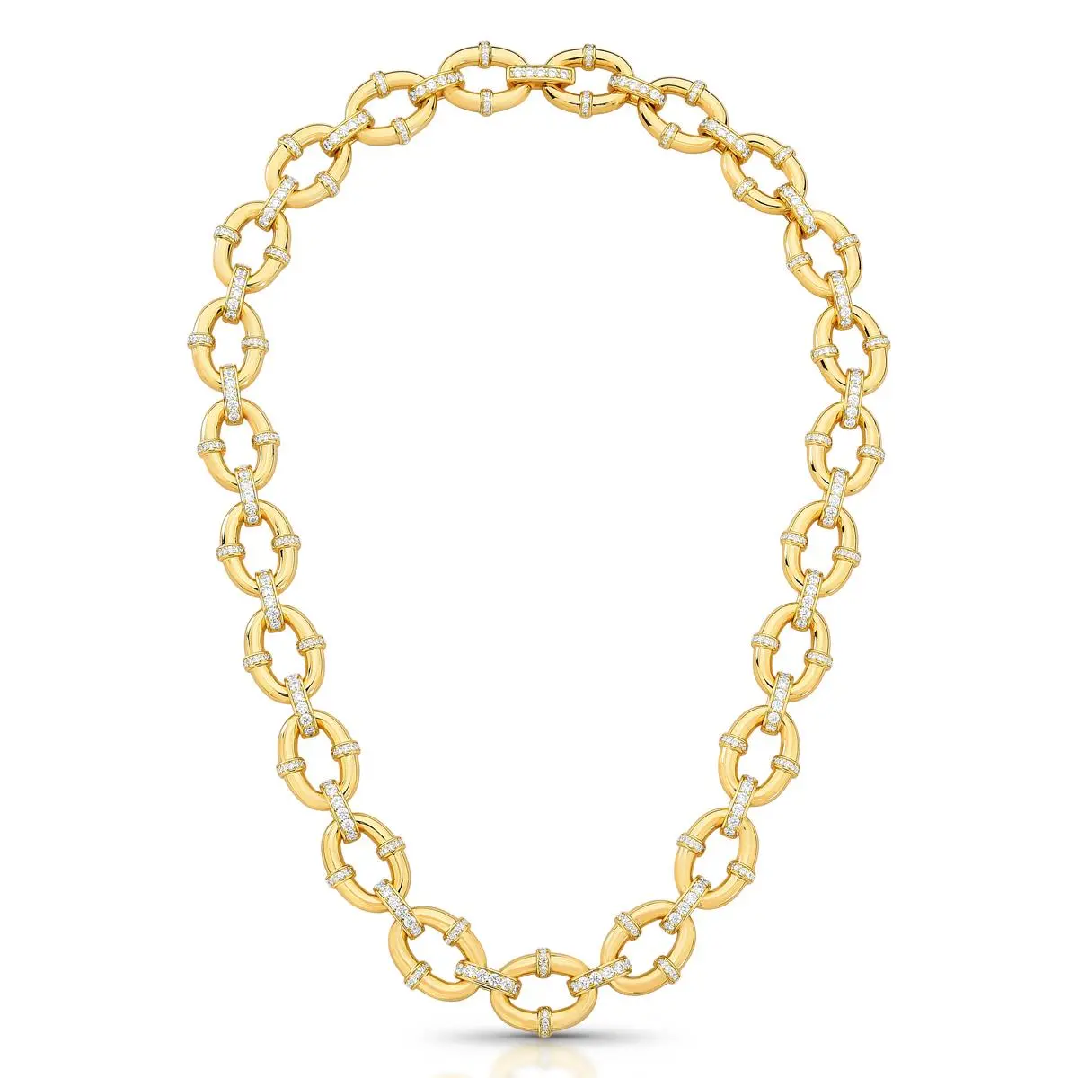 Ficha técnica do Colar Elos Lisos entre Elos Zircônias Ouro