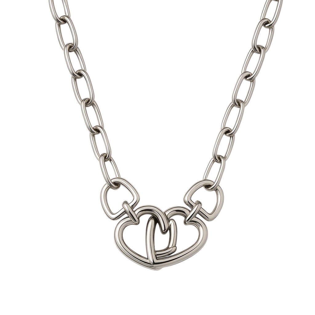 Colar Elos Prata Duo Coração Prata Artesanal é um colar fashionista está super em alta!! Invista e fique na Moda !