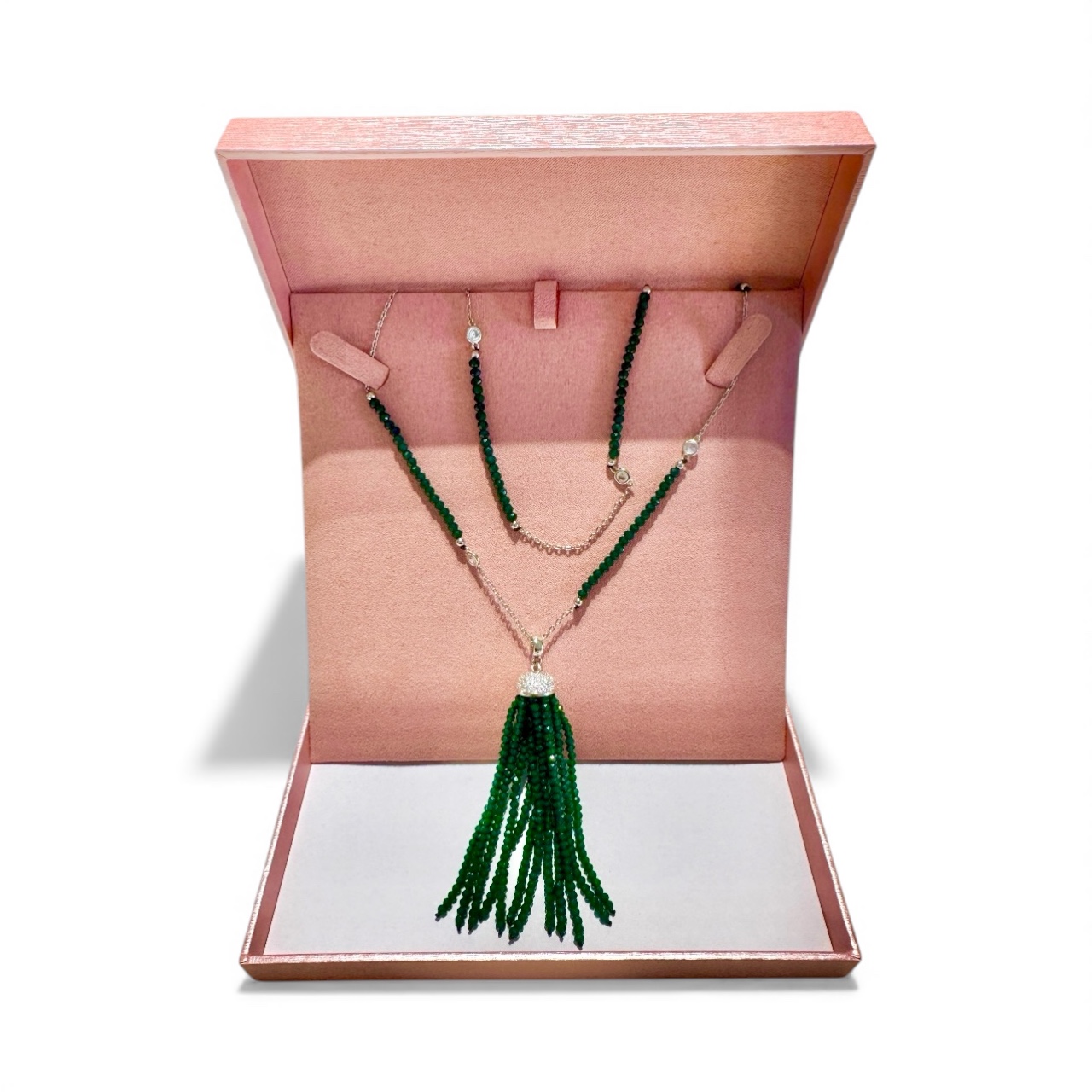 Colar Longo Espinélio Verde Artesanal é um Colar atemporal ele por si só ja faz Toda a Diferença , Lindo com looks no Branco, Preto e Jeans!! Invista neste modelo sempre bem vindo ao look diário.