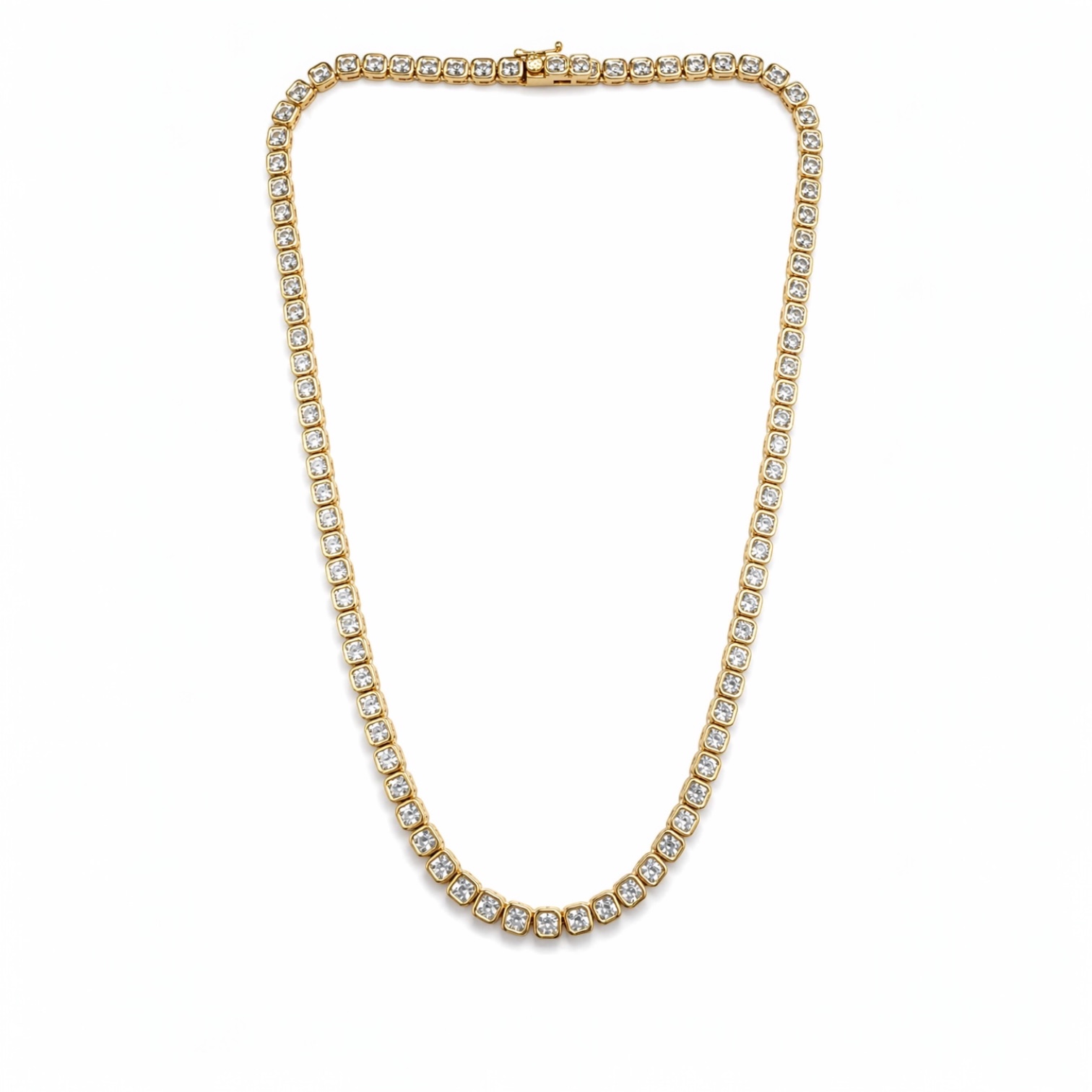 Colar Riviera Quadrados Ouro Prata 925 é aquele colar para fazer a diferença, não pode faltar no seu pescoço uma joia única que facilmente compõem com outros colares.