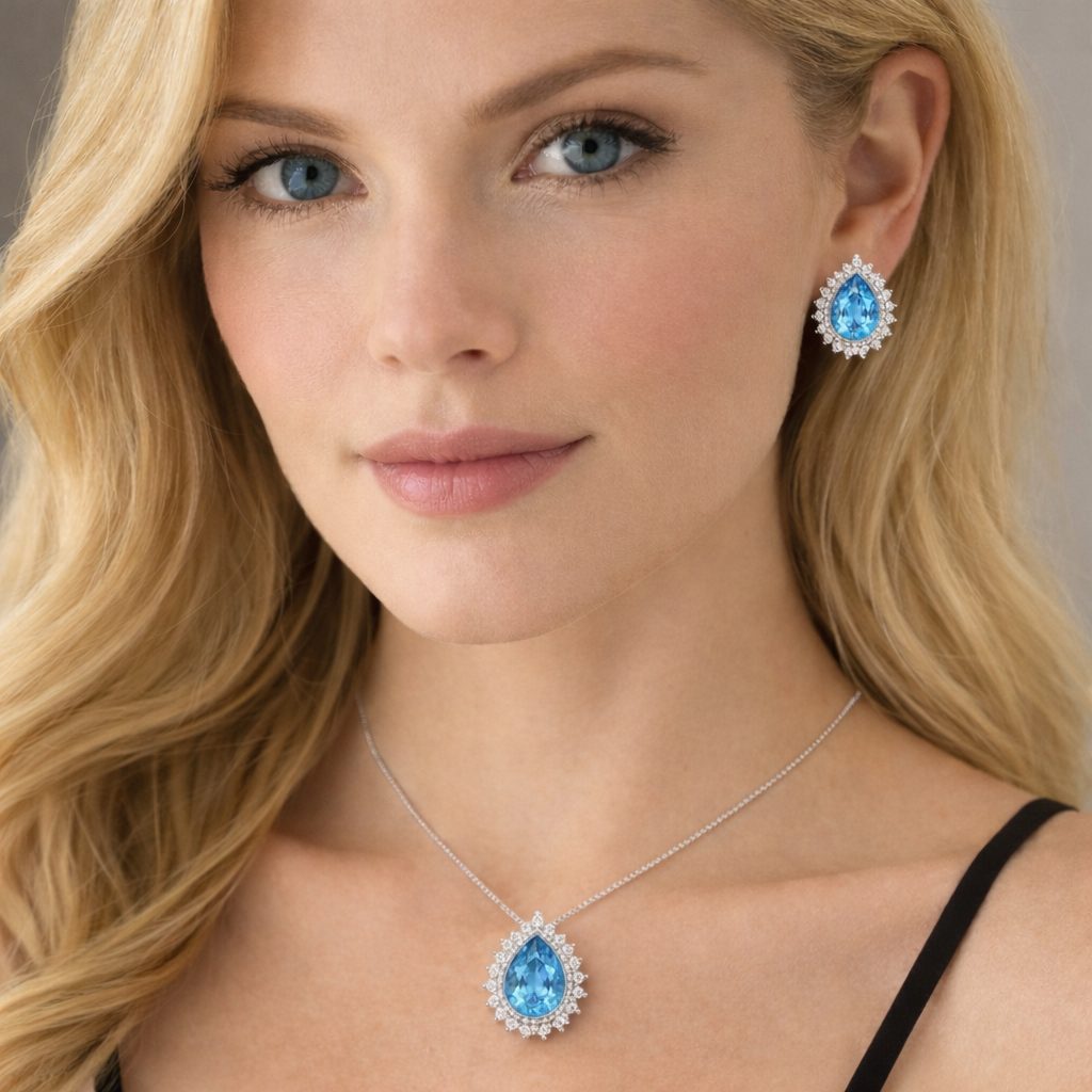 Conjunto Gota Agua Marinha Zircônias Prata 925 é um Conjunto espetacular, com ele você simplesmente arrasa, de uma cor apaixonante, simplesmente um Luxo, joia na prata 925 com Zircônia Brancas em volta.
