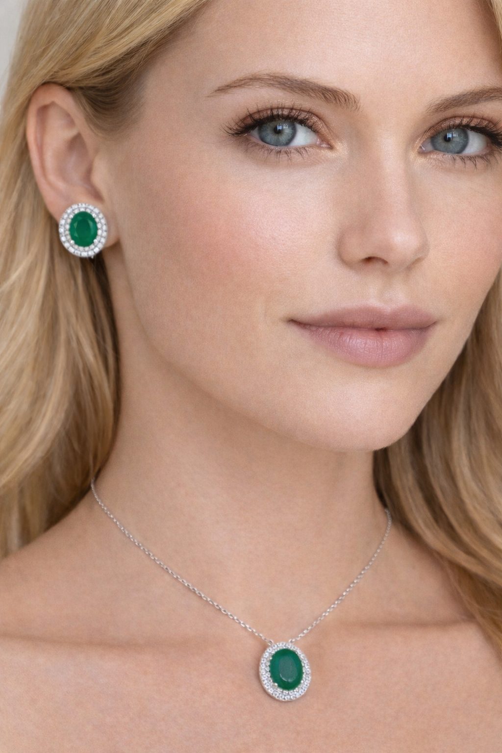 Conjunto Oval Esmeralda Prata 925 é Aquele Conjunto Coringa para usar todos os dias e não tirar mais, joia na prata 925, com um Brilho Exuberante.