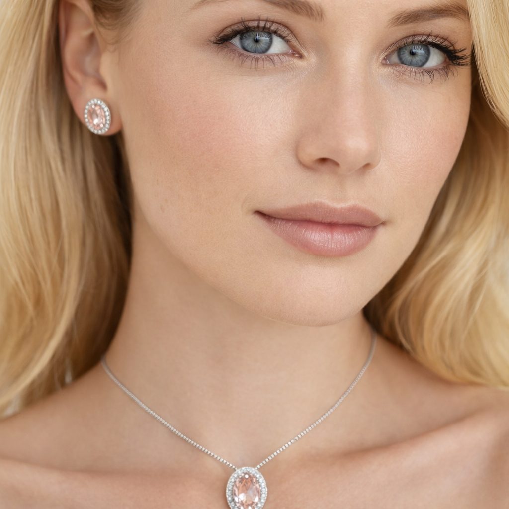 Conjunto Oval Rosa Prata 925  é Aquele Conjunto Coringa para usar todos os dias e não tirar mais, joia na prata 925, com um Brilho Exuberante sua lapidação  assemelha a um diamante.