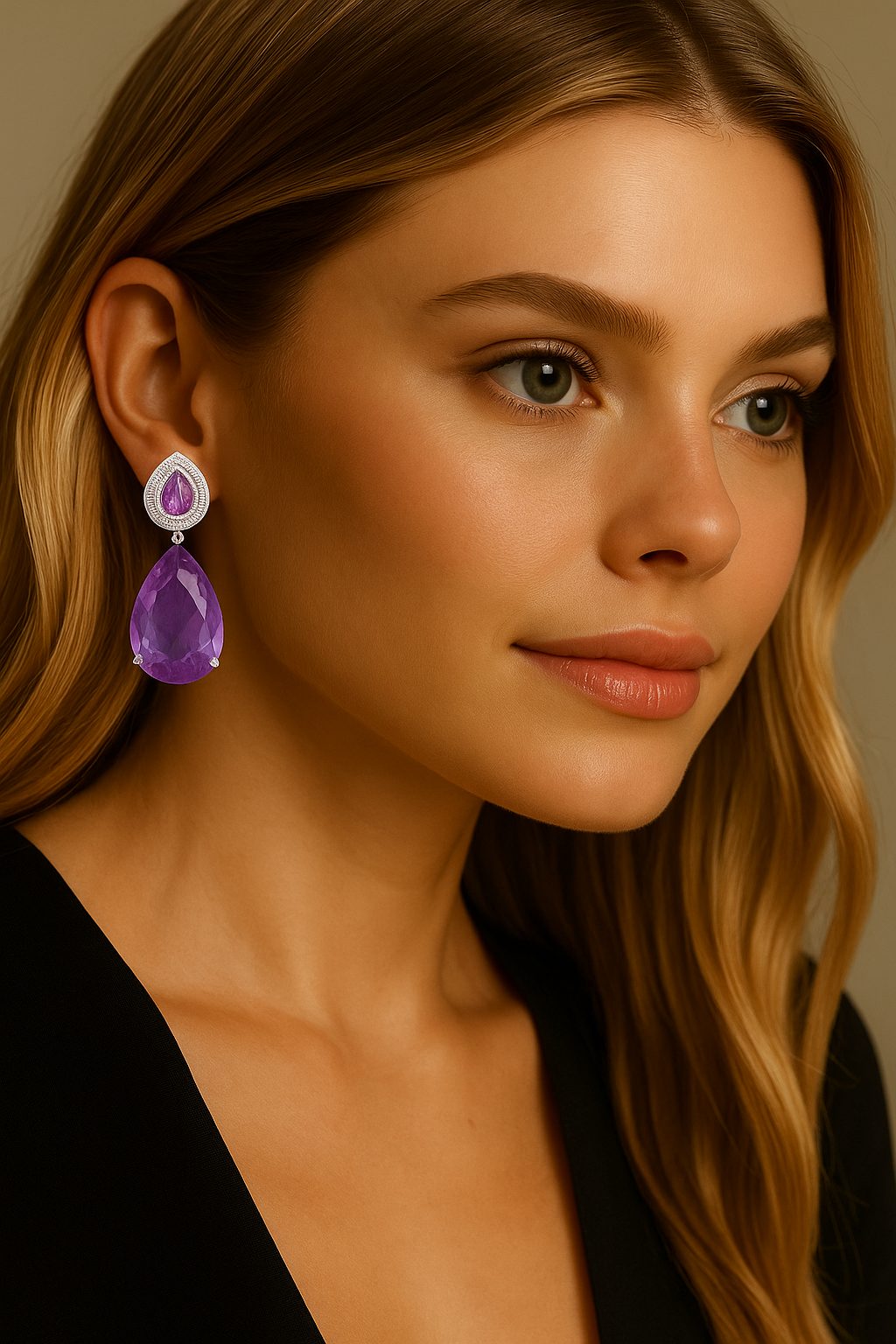 OBS: Este brinco muda de cor conforme a luz que você esteja, dentro de casa ele fica mais Para Ametista e na luz natural mais Azul .