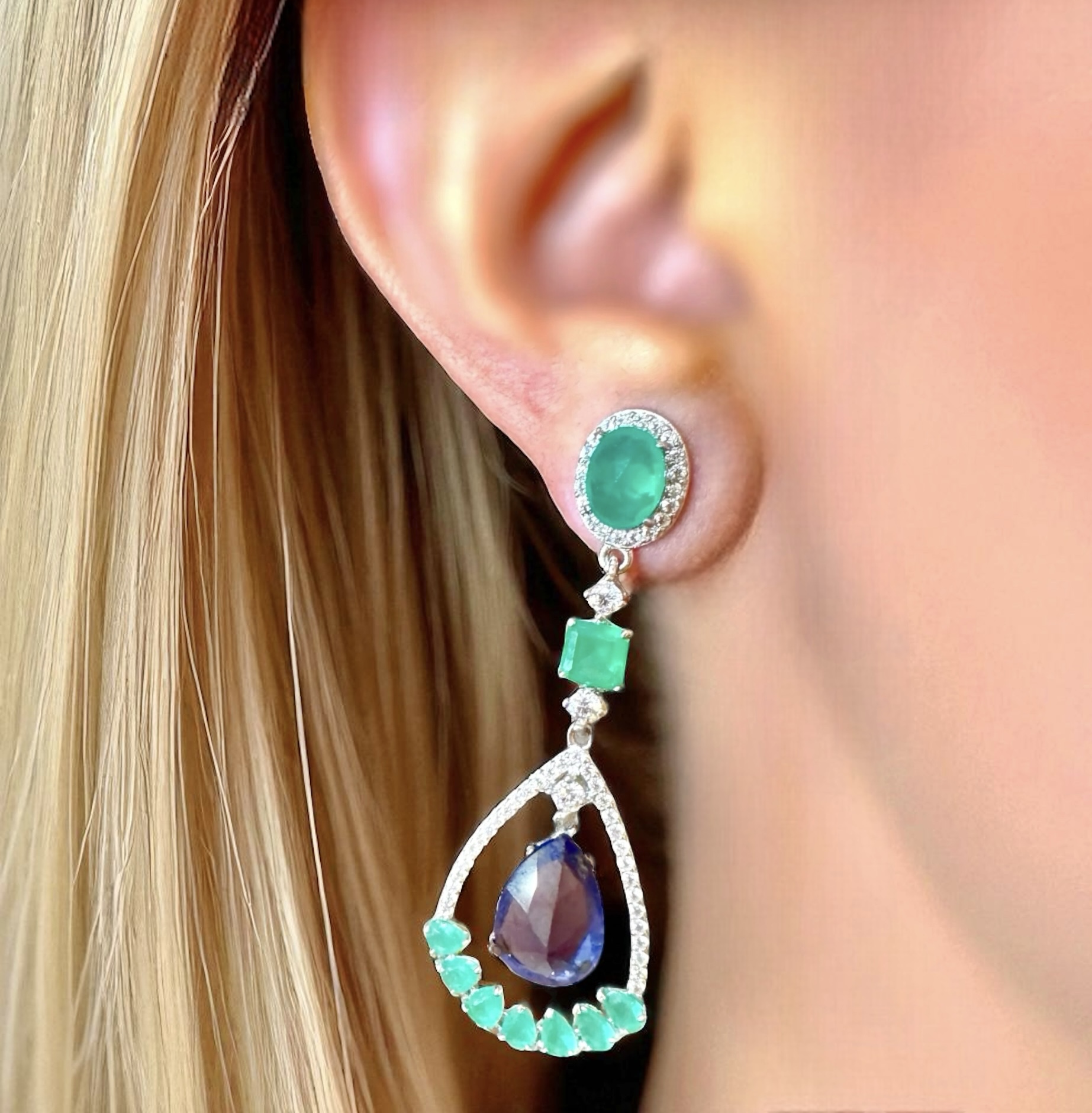Brinco Denise Tanzanita com Turmalina Verde Prata 925   é um Brinco especial, inovador super tendência e moda invista nele em qualquer ocasião!!!
