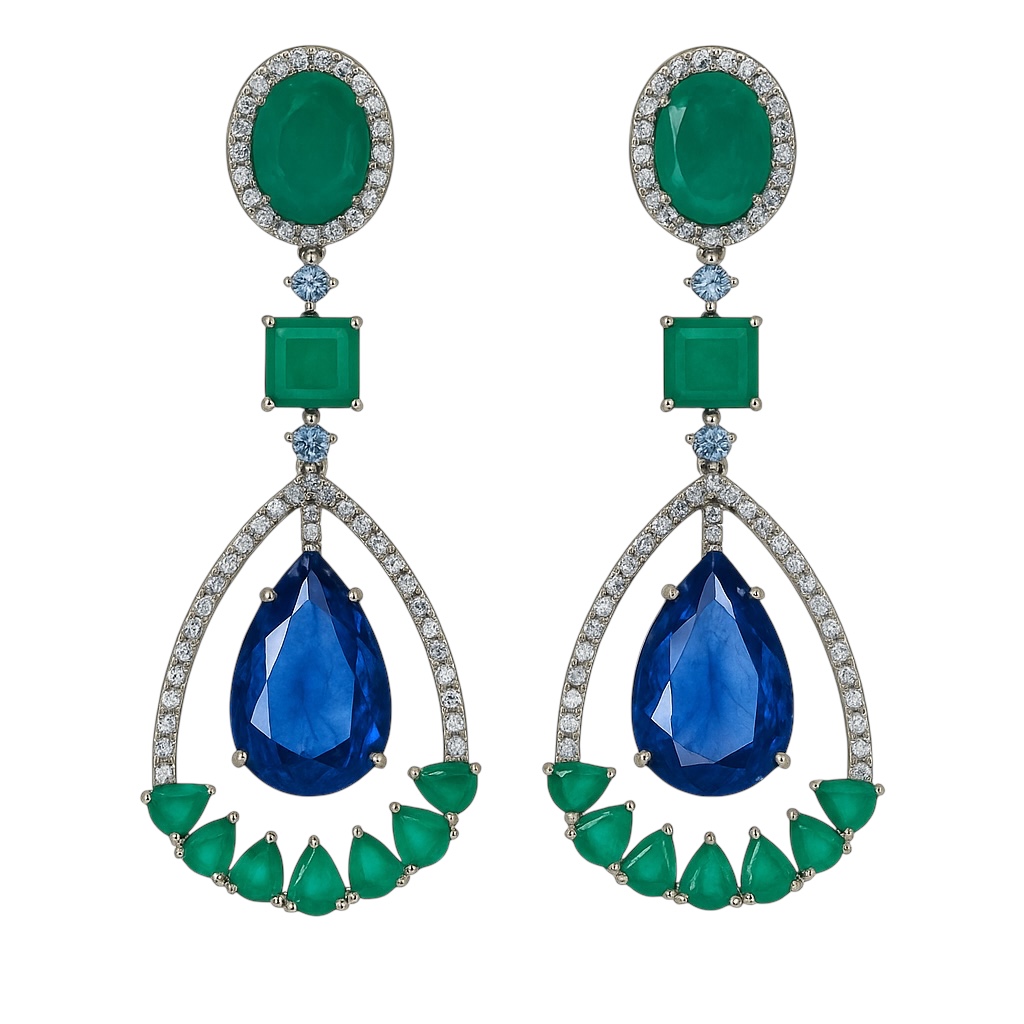 Brinco Denise Tanzanita e Turmalina Verde Prata 925