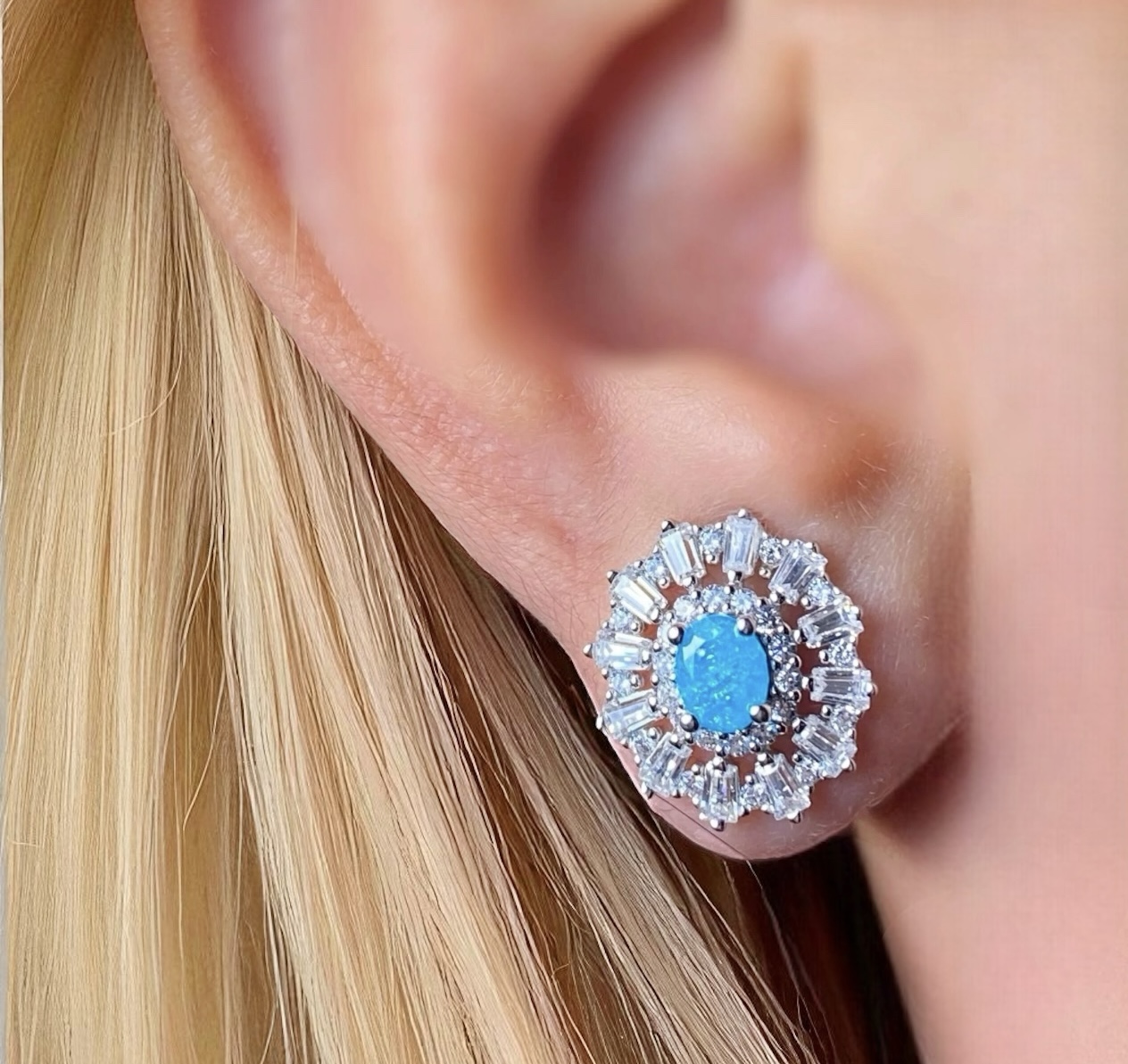 Brinco Flor Cravejado Blue Sky Semi Joia de Luxo é um brinco Elegante com um toque a mais de Delicadeza, este brinco em Prata 925 traz um toque moderno e o contraste das cores em uma joia majestosa. Perfeito para visual meigo e romântico, Brinco Florzinha com zircônia encanta desde garotinhas às mulheres adultas.