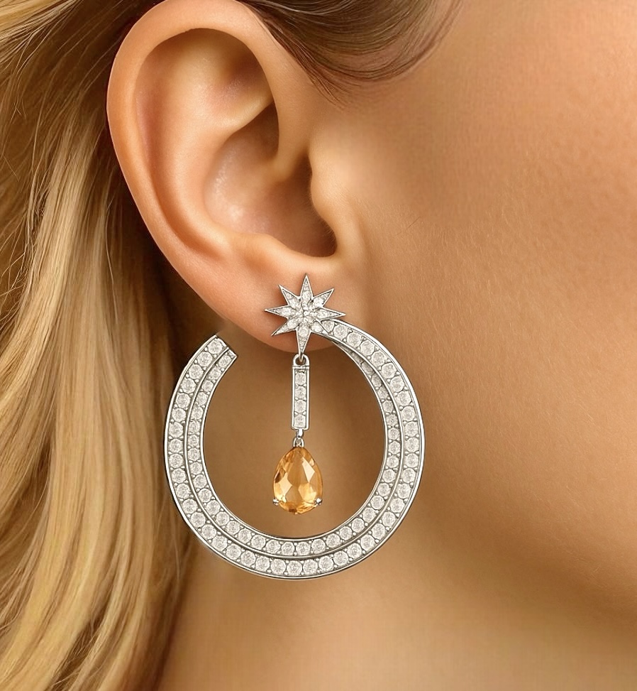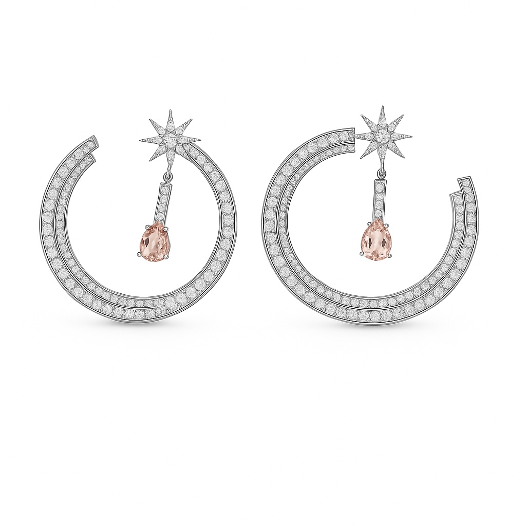 Brinco Luxo Morgana Cravejada Morganita Prata 925