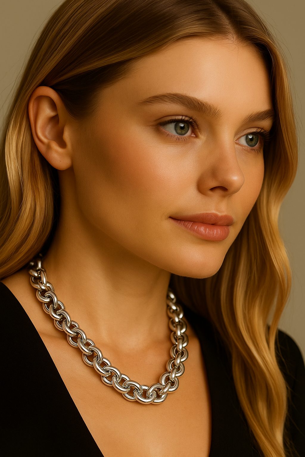 Colar Elos Ovais Grosso Rodio é um colar que vem com TUDO para este, esta Super em ALTA os Colares, Pulseiras em Elos, Garanta já o seu e fique mais Bela e na Moda.