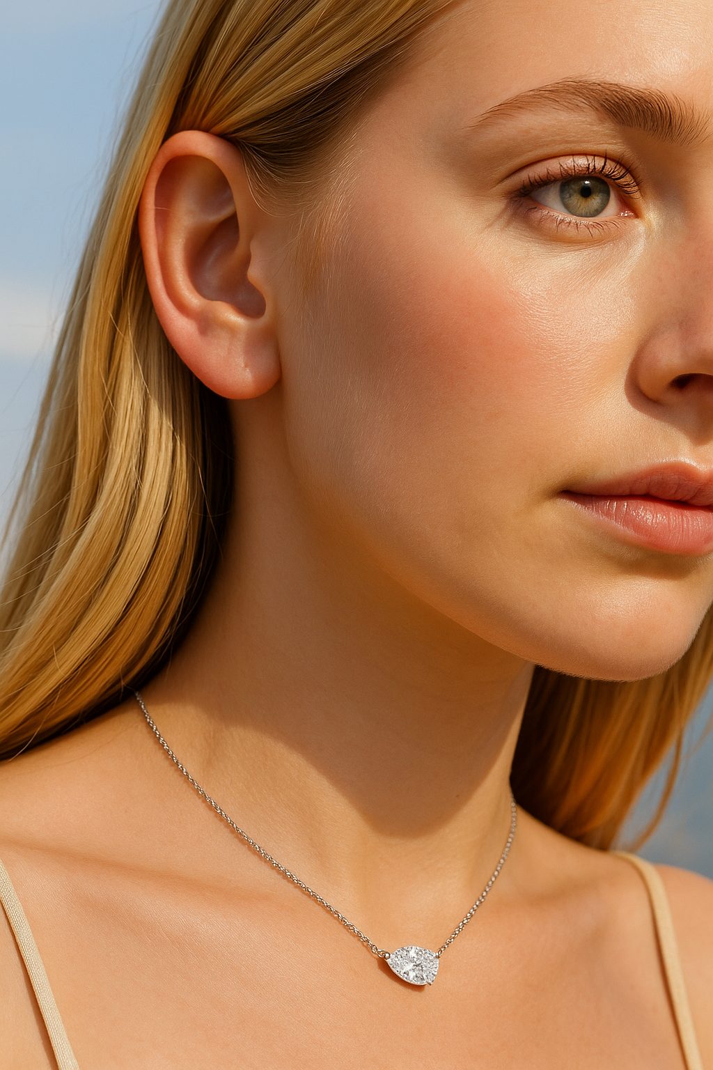 Colar Gota Reclinado  Moissanite