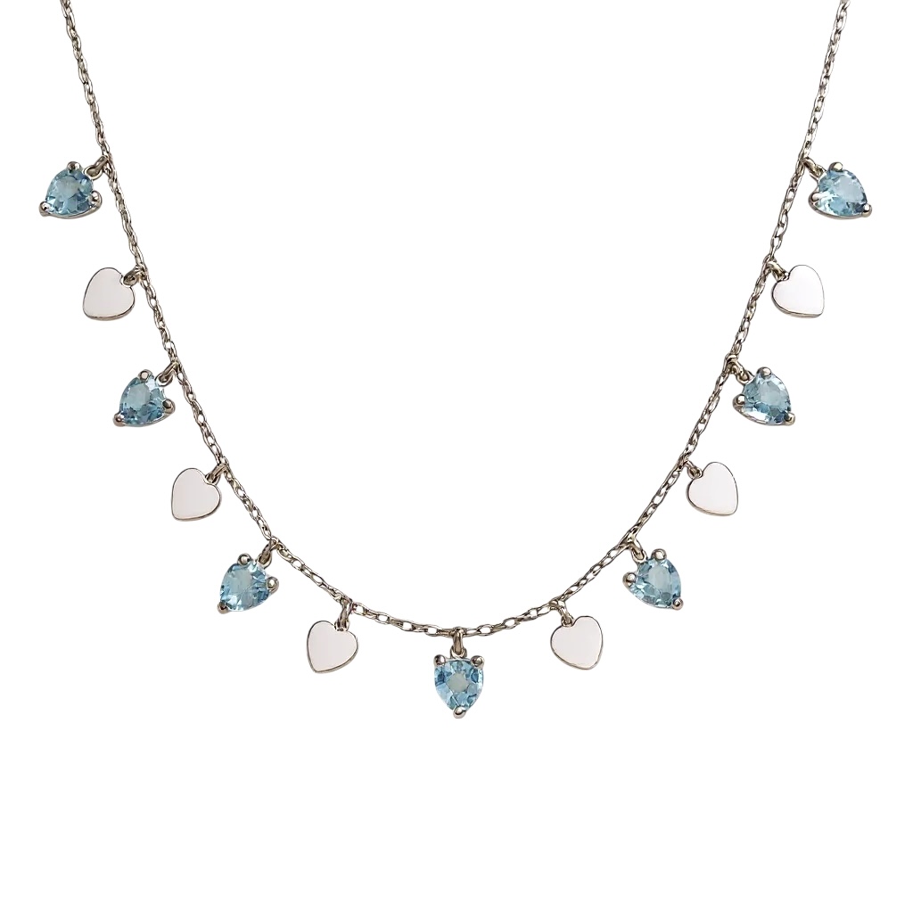 Colar Pendentes Corações Agua Marinha e Corações Liso Prata925 é uma joia delicada ideal para deixar o seu mix de colares mais sofisticado e na moda, invista nesta joia maravilhosa!