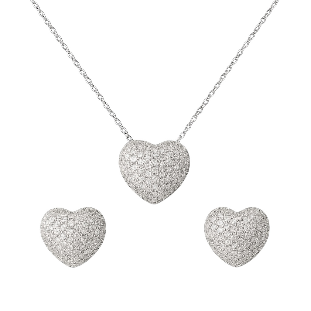Conjunto Coração Micro Zircônias Brancas Prata 925 é um Conjunto espetacular, com ele você simplesmente arrasa, de uma cor apaixonante, simplesmente um Luxo, joia na prata 925 com Zircônia Brancas .
