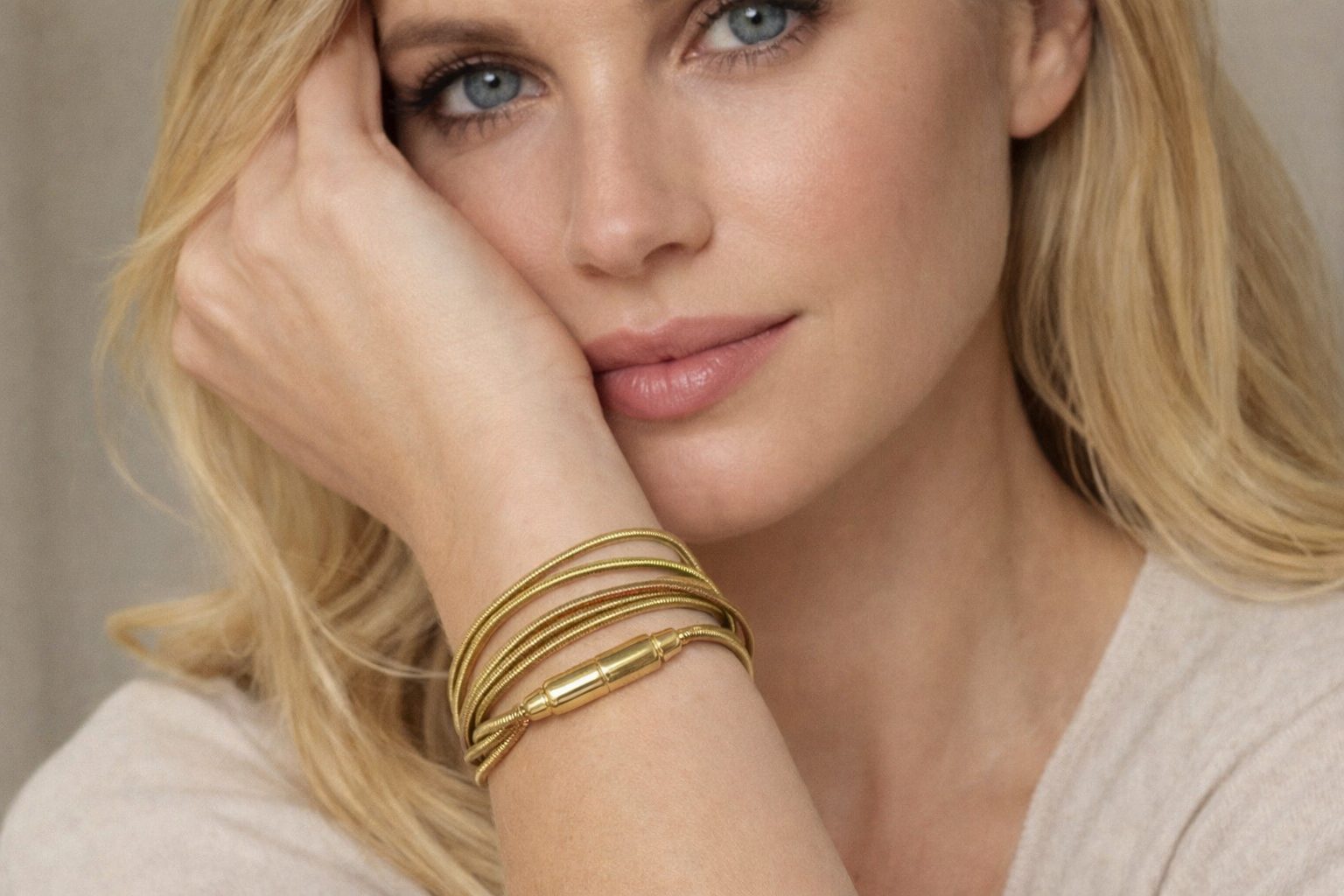 Pulseira Corda de Violão Gold , super em Alta, a mais queridinha do momento perfeita para usar com relógio ou seu mix de pulseiras favorito, ela simplesmente fecha o look perfeito, modernidade e sofisticação no banho de Ouro 18k.