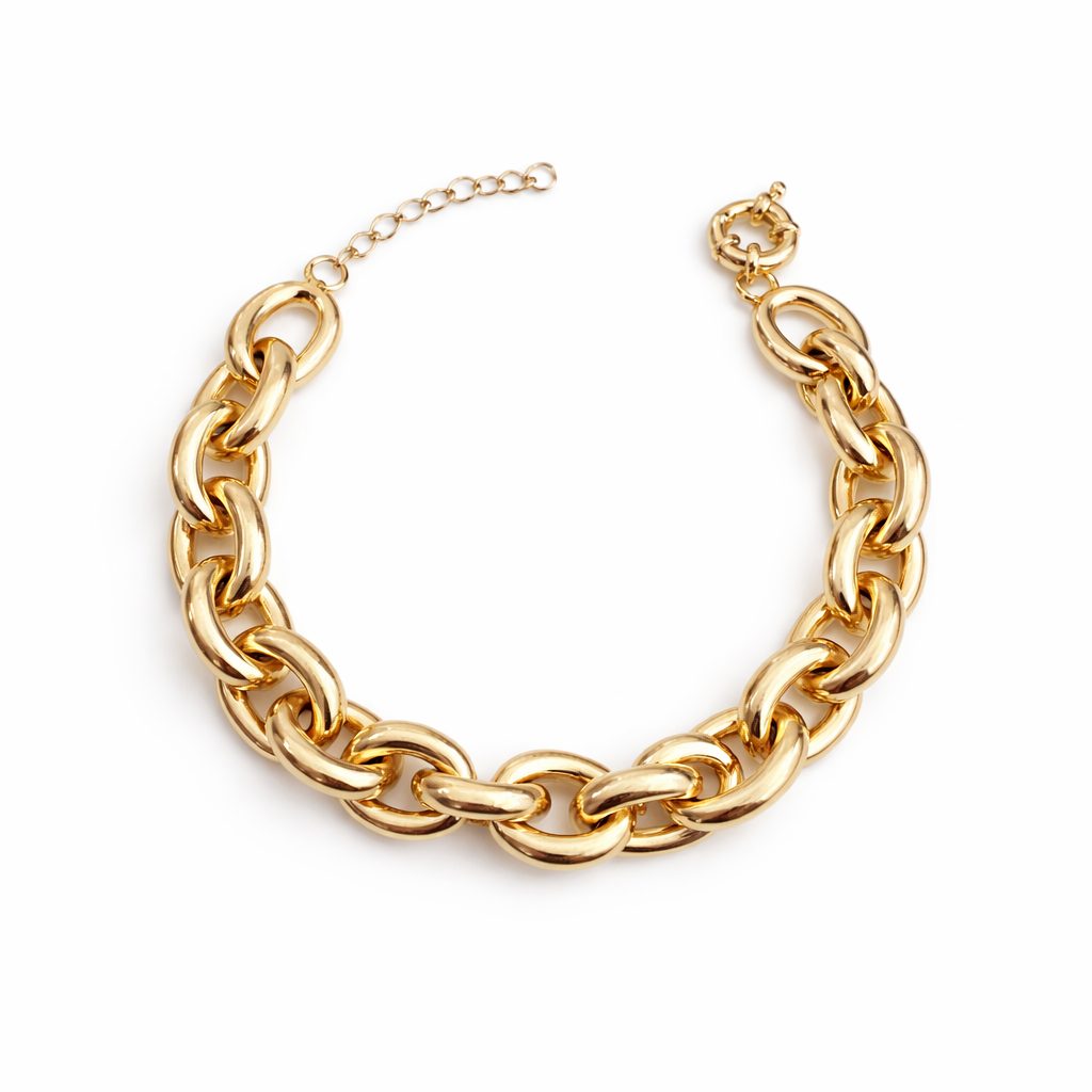 Pulseira de Elos Pequeno Ouro Semi Joia é uma pulseira fashionista está super em alta. Pulseira de elos Pequenos, banhado a ouro 18K.
