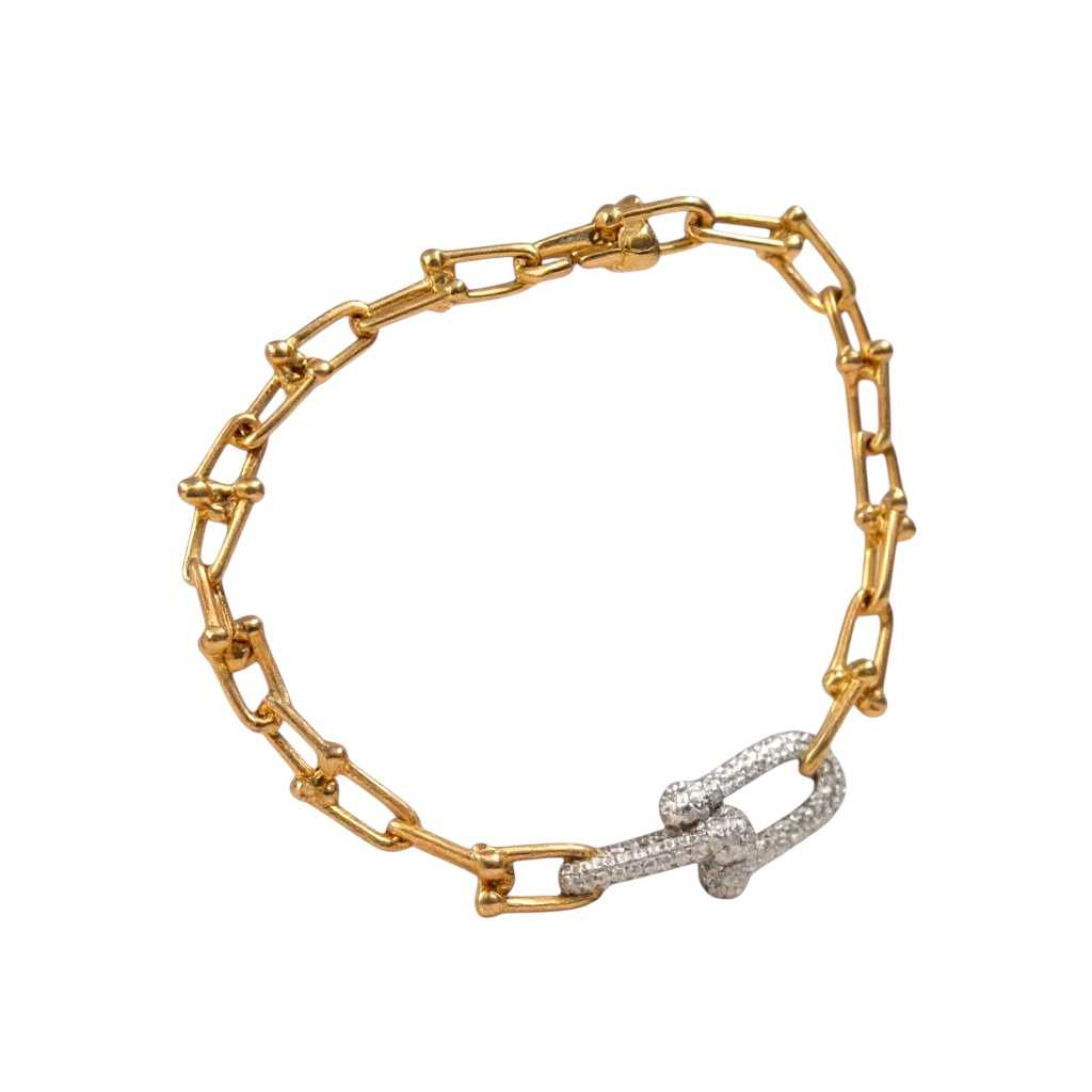 Pulseira Inspired Elos Lisos e Cravejados Gold a mais queridinha pulseira para usar com relógio ou seu mix de braceletes favorito, ela simplesmente fecha o look, perfeita joias em prata 925 banho de ouro 18k, cravação em zircônias brancas.