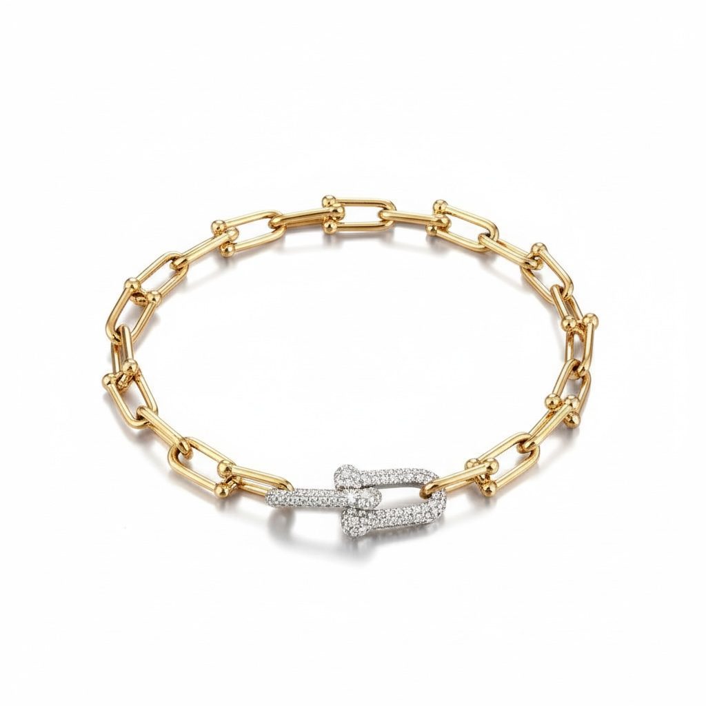 Pulseira Inspired Elos Lisos e Cravejados Gold a mais queridinha pulseira para usar com relógio ou seu mix de braceletes favorito, ela simplesmente fecha o look, perfeita joias em prata 925 banho de ouro 18k, cravação em zircônias brancas.