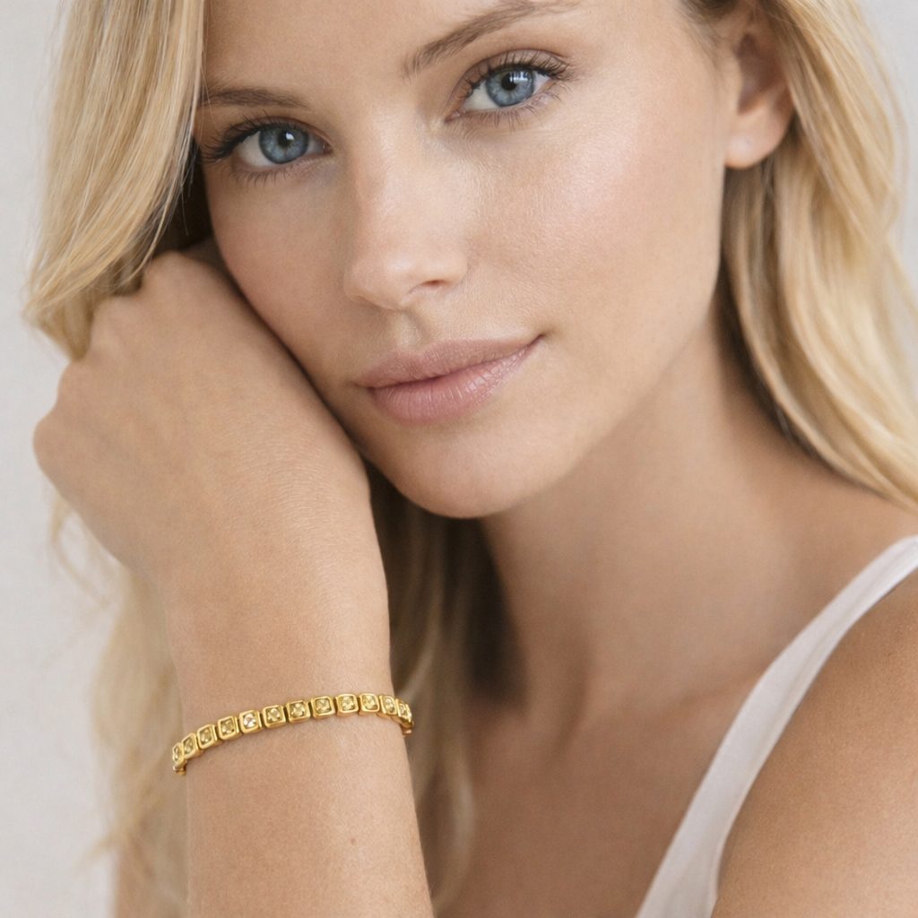 Ficha técnica da Pulseira Riviera Quadrados Yellow Gold